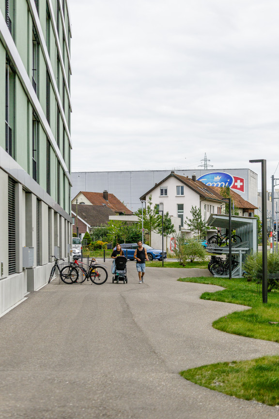 Anne Jaggy und Florence Blanckarts waren massgeblich an der Ausstattung der beiden Gemeinschaftsräume mit Fernseher und Küche beteiligt. Sie werden für Veranstaltungen sowie als Fitnessraum genutzt. «Geplant war ursprünglich eine Velowerkstatt, aber die wollte hier niemand», sagt Blanckarts. Sie arbeitet als Laser-Ingenieurin in Glattbrugg, Jaggy bei der Amag in Cham – beide sind mit dem ÖV unterwegs. Überrascht hat sie die Offenheit und die Kontaktfreudigkeit vieler Bewohnenden. Die Nachbarschaft hat einen Whats-App-Chat eingerichtet für Fragen und als Hilfe. Generell bestehe ein guter Zusammenhalt. Wertvoll dafür waren das Eröffnungsfest sowie durch Itoba organisierte Spiele und Essen. Doch es brauche auch Eigeninitiative und wiederkehrende Veranstaltungen. Selten funktioniert eine Gemeinschaft ohne Konflikte. Einige Nachbarinnen und Nachbarn beklagten sich über das laute Plätschern des Brunnens, der direkt an der viel befahrenen Gränicherstrasse liegt.