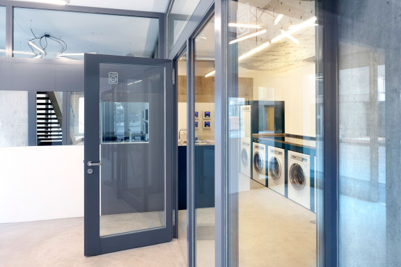 Im Erdgeschoss des Haupthauses befinden sich die Waschküchen. Sie fungieren zugleich als mögliche Treffpunkte für die Bewohnerinnen und Bewohner.