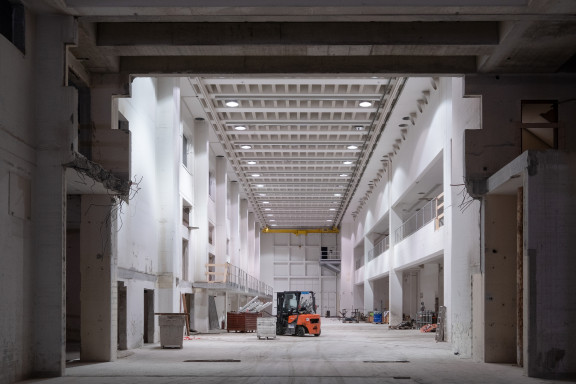 Das gilt auch für die Bauarbeiten in den künftigen Räumen von Halter. Diese befinden sich momentan noch im Rohbau, doch es lässt sich bereits erahnen, wie sie dereinst aussehen werden. Der zentrale Zugang und der Empfang werden sich in einem zwölf Meter hohen Atrium befinden. Nördlich davon entstehen die halb öffentlichen Bereiche mit Co-Working-Spaces für Unternehmen und Personen aus der Bau- und Immobilienbranche. Dazu zählen etwa Firmen, die mit Halter, Tend oder Raumgleiter an gemeinsamen Projekten arbeiten. Vom Empfang aus führen künftig Treppen und Lifte zu den dreizehn Meter höher gelegenen Büroflächen. Diese umfassen rund 4800 Quadratmeter und erstrecken sich direkt unter dem Dach der einstigen Druckereihallen in drei Richtungen. Durch die Anordnung und eine Höhe von bis zu 6,5 Metern erinnern sie an eine Kathedrale. Oberlichter, ein verglaster Erker und die Stahlfachträger im Industrie-Look sorgen für dieses spezielle Ambiente. Klappt alles, dann können knapp siebzehn Jahre nachdem der NZZ-Verlag den Start seiner neuen Druckmaschine feierte, gleichenorts die Mitarbeitenden der Halter-Gruppe ihre Büros einweihen. Bis dahin wird das Projektteam noch viele Ad-hoc-Entscheide treffen müssen.