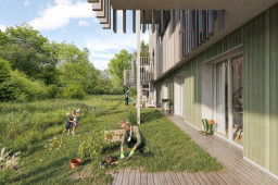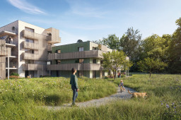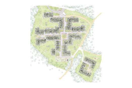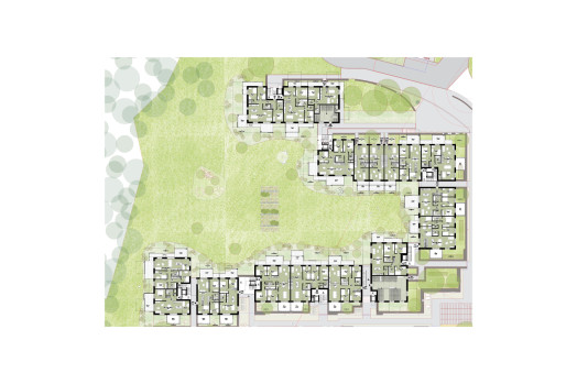 Das Projekt für die Waldstadt zeugt von der vertieften Auseinandersetzung mit dem Ort und dem dafür passenden Bautypus. Die Architekten studierten dazu die baulichen Strukturen kleiner Siedlungen – traditionelle lokale Dörfer ebenso wie Siedlungen im alten Griechenland oder aus römischer Zeit. Zudem glichen sie ihre Ideen mit denen anderer Fachleute ab, wie etwa des 2021 verstorbenen Stadtplaners und ehemaligen Stadtbaumeisters von Basel, Carl Fingerhuth. «Unser Ziel war es, ein Umfeld zu schaffen, in dem man sich wohlfühlt und ein Gemeinschaftsleben möglich ist», sagt Andi Loew. Die Basis der Hauptsiedlung auf der grossen Lichtung bildet ein Kreuz aus zwei autofreien Erschliessungsachsen, die von Norden nach Süden und von Osten nach Westen verlaufen. An ihrem Schnittpunkt befindet sich der Quartierplatz. Den Auftakt der Nord-Süd-Achse macht im Norden der sogenannte Ankunftsplatz als Hauptzugang zur Siedlung mit Buswendeschleife und Tiefgarageneinfahrt, am Südende liegt ein Spielplatz. An den Enden der quer verlaufenden Achse ist je ein kleiner Platz als Übergang zum Wald angeordnet. Die Gassen werden beidseitig von drei- bis fünfgeschossigen Gebäuden gesäumt, die durch Vor- und Rücksprünge, Durchgänge, grosse Balkone sowie Vorgärten abwechslungsreich gestaltet sind. Unterstützt wird dieser Eindruck durch unterschiedlich materialisierte Fassaden. «Jedes Haus hat so ein eigenes, wiedererkennbares Gesicht», sagt Architekt Dominic Meister. Der Charakter der beiden Gassen variiert: Diejenige von Norden nach Süden dient als belebte Verbindung zwischen den drei Plätzen, die schmalere Querachse erschliesst nur die Wohnhäuser und hat einen intimeren Charakter. An der Aussenseite der Gebäude erstrecken sich naturnahe Wiesen. Die Zweiseitigkeit setzt sich auch in den Grundrissen fort: Fast alle Wohnungen orientieren sich sowohl zur Gasse als auch zur Natur hin. Je nach Standort sind sie entweder nach Süden und Norden oder nach Osten und Westen ausgerichtet. Dabei läuft der Bereich für Wohnen, Essen und Küche jeweils von Fassade zu Fassade. Wie die Wohnfläche aufgeteilt wird, können die künftigen Bewohnerinnen und Bewohner selbst entscheiden. «Wir haben bewusst keine Einteilung vorgenommen», sagt Dominic Meister. Unterstützt wird die zweiseitige Ausrichtung durch beidseits angeordnete Balkone. Im Endausbau umfasst die Waldstadt 214 Wohnungen mit 2,5 bis 5,5 Zimmern, wobei der Schwerpunkt auf Familienwohnungen liegt. In der ersten Etappe werden 104 Wohnungen realisiert, die zweite umfasst 78 Wohnungen. In der dritten Etappe, die im Gegensatz zur Hauptsiedlung kompakt um einen Innenhof herum konzipiert ist, können nochmals 32 Einheiten erstellt werden. Ihre Realisierung ist jedoch von der Nachfrage anhängig. «Unser Ziel wäre es, möglichst ohne Unterbruch weiterzubauen», sagt Projektleiter Roman Kummer. Bereits mit der ersten Etappe aktiv aufgegleist wird das Gemeinschaftsleben: Alle Wohnungskäuferinnen und -käufer werden per Kaufvertrag auch Mitglied im Quartierverein und bezahlen dafür einen festgelegten Jahresbeitrag. Damit wird sichergestellt, dass von Anfang an Geld für Gemeinschaftsaktivitäten vorhanden ist, wie etwa das Siedlungsfest nach dem Einzug im Jahr 2027.