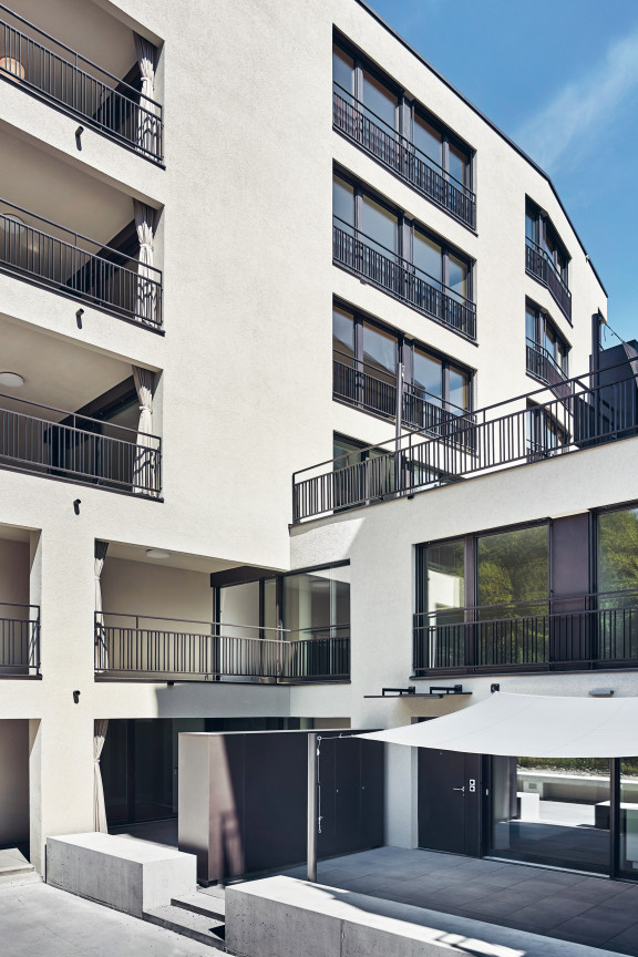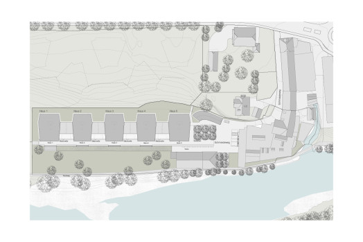Der zentrale Platz, zu dem auch ein baumbestandener Spielbereich gehört, und die 77 Eigentumswohnungen sind aus einem 2014 ausgelobten Studienauftrag hervorgegangen, zu dem sechs Architekturbüros aus der Region eingeladen waren. «Dabei hat die Auseinandersetzung mit dem Ort und dem teilweise denkmalgeschützten Bestand eine wichtige Rolle gespielt», hebt Marcel-Jann Blattert von Halter Entwicklungen hervor, der das Projekt während der Realisierung begleitet hat. Im Gegensatz zu anderen Arealentwicklungen liegt die Wohnüberbauung in einem gewachsenen Umfeld, was ihr eine starke Identität verleiht. Eine weitere Besonderheit ist die Lage am Wasser. Die Parzelle reicht bis an den Uferweg, wo wenige Meter weiter die Aare dahinfliesst. Der Ausblick auf die grüne Uferzone und den Fluss macht die Wohnlage einzigartig. Gleichzeitig birgt die Situation aber auch Risiken – bei Hochwasser droht das Grundstück überflutet zu werden. Dass es sich dabei um kein realitätsfremdes Szenario handelt, zeigte sich gleich zu Beginn der Bauarbeiten, als die Aare über das Ufer trat und die noch offene Tiefgarage überschwemmte.