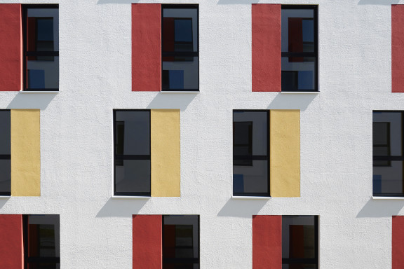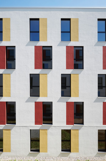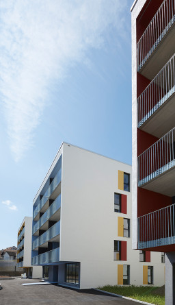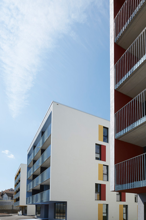 Farbe und eine Reihe von Details verleihen den Gebäuden eine Sinnlichkeit, für die das Büro Burkhalter Sumi bekannt ist. Dazu Yves Schihin: «Eine farbige Wand oder Decke kostet wenig mehr als eine weisse, hat aber, richtig gesetzt, eine erstaunliche räumliche Wirkung.» Die Farbe – jedes Haus hat einen anderen Grundton – zieht sich von den Eingängen über die Treppenhäuser bis zu den Loggien.