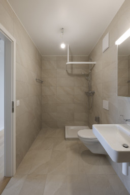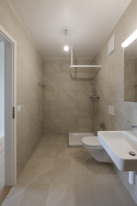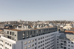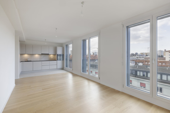 Neben den grundlegenden gestalterischen und energetischen Arbeiten an der Aussenhülle wurden auch die Wohnungen im Inneren modernisiert, um sie den heutigen Lebensstandards anzupassen. Die neu konfigurierten Grundrisse bieten zeitgemässe Küchen und Bäder sowie eine sanierte Haustechnik. Zu den Einheiten in den Aufstockungen gehören Attikawohnungen mit privaten Dachterrassen – eine Premiere in Freiburg. Diese Aussenbereiche mit freiem Blick auf die Saane und die umliegende Landschaft steigern die Attraktivität des Objekts im Stadtzentrum.