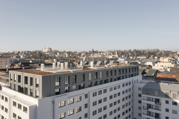Über seine architektonische Qualität hinaus steht dieses Projekt besonders für eine gelungene energetische Sanierung. Die thermische Hülle wurde komplett überarbeitet: Wände, Dach und Keller erhielten eine zusätzliche Aussenisolierung von 22 Zentimetern, alle Fenster wurden ausgetauscht und verfügen nun über eine leistungsfähige Verglasung. Schliesslich wurde das Gebäude an die Fernwärme angeschlossen. Das Projekt zeigt somit eindrücklich, welche Möglichkeiten ein Umbau bieten kann, um die CO₂-Bilanz eines Bauwerks zu verbessern und seine Langlebigkeit zu sichern. In einem Kontext, in dem Städte bestrebt sind, die Zersiedelung zu begrenzen, kann der Gebäudekomplex an der Ecke des Boulevard de Pérolles und der Rue Vogt als Vorzeigemodell angesehen werden. Er beweist, dass Verdichtung und Nachhaltigkeit keine Gegensätze sind, sondern sich sogar verstärken können. Das Bauvorhaben ist also mehr als nur eine Renovation. Es steht für eine intelligente Intervention, die die Nutzenden in den Mittelpunkt stellt, gleichzeitig aber auch ökologische Herausforderungen, die gewünschte Verdichtung sowie den Denkmalschutz in Einklang bringt. Damit stellt das Projekt eine konkrete Antwort auf die dringliche Frage nach einer nachhaltigen Umgestaltung unserer Städte dar.