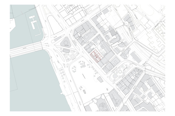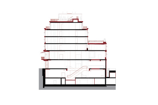 Während das Innenleben nach Abschluss des Studienauftrags stark überarbeitet wurde und letztlich nur die untersten beiden Geschosse über eine vertikale Öffnung miteinander verbunden sind, hat sich der Ausdruck des Hauses im Verlauf der weiteren Planung kaum verändert. Statt im Innern mehr Transparenz zu schaffen, öffnet es sich in erster Linie gegen aussen. Nicht nur sein Fensteranteil vergrössert sich bedeutend, auch über Veränderungen der Volumetrie gelingt ein stärkerer Bezug zum Aussenraum. Ein zentrales Element, das dem Gebäude Öffentlichkeit verleiht, ist die Terrasse auf Höhe des ersten Obergeschosses, von wo die Nutzenden über den Sechseläutenplatz bis zum See blicken können. Die westliche Gebäudeecke wird abgeschrägt, womit sie auf den Erker des Nachbargebäudes reagiert und das Haus Richtung Bellevue orientiert.