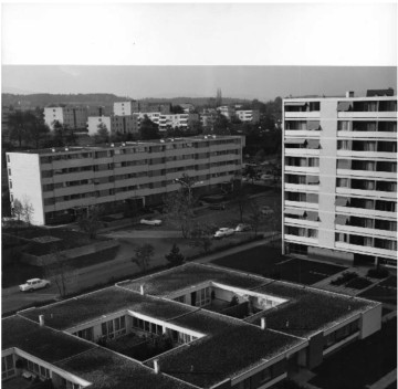 Même si en Suisse, la construction de vastes ensembles n’a jamais pris les mêmes proportions que dans d’autres pays européens, elle a fortement gagné en importance dans le discours et dans la pratique. Certains architectes progressistes cherchaient à faire écho au modernisme international et envisageaient de nouvelles échelles et hauteurs, et dans le cadre d’une recherche désespérée de solutions pragmatiques, les grands ensembles ont fait leur entrée dans les débats et la construction concrète de logements à prix modérés. Des architectes ont expérimenté la construction industrialisée de logements, d’abord en Suisse romande, puis en Suisse alémanique, pour le compte de maîtres d’ouvrage publics et privés.