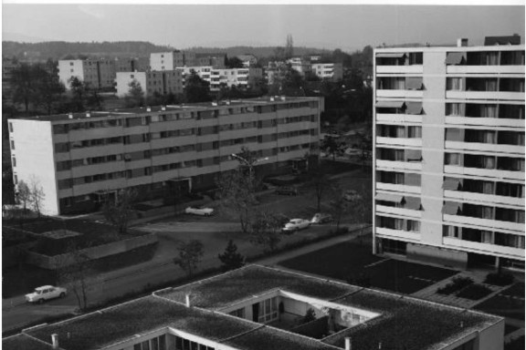 Ces grands ensembles construits dans la verdure se sont retrouvés dans le sillage d’une large critique du développement frénétique de la haute conjoncture dans les années 1960. Malgré l’activité record de construction, le problème des logements n’a pas pu être résolu et la question du logement est devenue, selon l’expression du conseiller fédéral Ernst Brugger (PRD) en 1970, « l’enjeu politique numéro un »14, qui a mis en évidence la face cachée de la haute conjoncture. La pénurie de logements persistante et la hausse des loyers, la spéculation foncière, l’éviction de la population établie de longue date dans le sillage des nouvelles constructions dans les centres-villes et l’urbanisation galopante au détriment des espaces naturels et culturels ont suscité de profondes craintes et résistances de la gauche jusqu’à la droite.