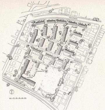 Toutefois, les lotissements décentralisés ne répondaient souvent pas au besoin de se loger à proximité du lieu de travail, et l’idéal de la maison individuelle avec jardin potager pour subvenir à ses besoins n’était que rarement réalisable sur les surfaces limitées des centres urbains. En effet, les lotissements de ces années-là étaient généralement construits dans les villes sous la forme d’ensembles uniformes de plusieurs étages, ainsi que de lotissements verdoyants disposés en rangées ouvertes à la périphérie des villes. Dans ces « colonies », on répondait aux exigences de « lumière, d’air et de soleil » en intégrant des espaces ouverts et de rencontre. Les logements étaient aménagés de manière simple, mais fonctionnelle.