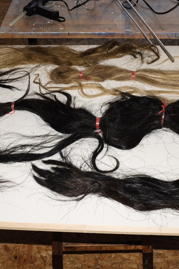 J’y vais régulièrement. Sur le chantier, je rencontre les architectes ou le chef de chantier Agron Noshi. Il est très positif et me soutient. Je suis aussi souvent accompagnée par Friederike Schmid. Basée à Lenzbourg, curatrice et directrice de projets artistiques, elle est l’interlocutrice centrale de ce projet pour une intervention artistique. Friederike a animé l’ensemble du concours et agit encore aujourd’hui comme facilitatrice lors des rencontres avec le maître d’ouvrage, les autorités ou les ingénieurs. Elle veille à ce que, malgré les exigences en matière de sécurité et de budget, l’expression et la force artistique d’Ursinae ne soient pas amoindries. Bien qu’il s’agisse de mon septième projet de ce genre, les conditions ne sont jamais les mêmes.