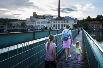 Wie auch immer man herkommt, man sollte sich Zeit dabei lassen. Die Augen zusammenkneifen und sich versuchen vorzustellen, wie aus dieser Industriebrache, einer der grössten der Schweiz, etwas Neues entsteht. Man sollte versuchen, der Zukunftsmusik zu lauschen, die hier gespielt werden soll. Das Immobilienunternehmen Halter AG wird an diesem Ort 1200 Wohnungen für 2400 Personen realisieren, oben mit Alpensicht, unten mit Zugang zum Fluss. Dazu kommen etwa 1500 Arbeitsplätze in Bereichen wie Dienstleistungen, Gewerbe, Gastronomie. Das Ganze soll sich organisch entwickeln, nicht aus dem Boden gestampft werden. Entwicklungsleiter Andreas Campi sagt: «Dies ist ein Generationenprojekt, keine schnell aufgezogene Retortenstadt. Es geht in einer ersten Phase darum, die Destination Attisholz bekannt zu machen, bevor die eigentlichen Neubauten realisiert werden. Parallel zur Areal-Transformation werden die Planungsinstrumente - Umzonung, neue baurechtliche Bestimmungen für die zukünftige Nutzung, Gestaltungspläne, Baubewilligungsverfahren - vorbereitet und umgesetzt.» Angepeilt werde das Jahr 2040. Dann soll das Attisholz-Areal ein neuer, urbaner Dorfteil von Riedholz sein. 2400 Menschen könnten einmal hier leben, in der Gemeinde Riedholz selbst sind es bis dato nicht so viele. Es wird also auch eine Entwicklung der nötigen Infrastruktur brauchen, mit Anschluss an den öffentlichen Verkehr, mit Betreuungsangeboten, einer Schule. Das frühere Niemandsland wird die Region verändern, Chance und Herausforderung sein.