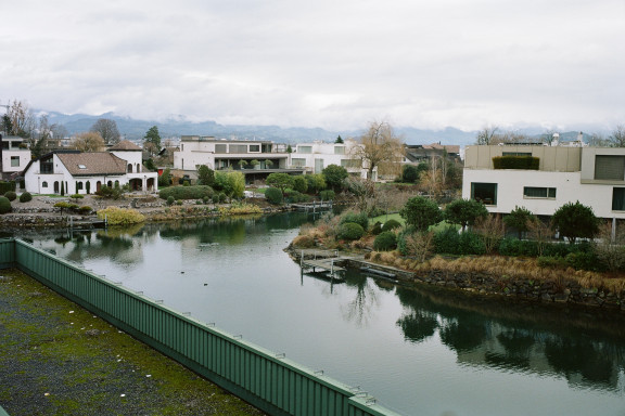 Rendez-vous sur le parking du Hurdnerwäldli, à Pfäffikon dans la commune de Freienbach, juste à côté des quatre silos rouillés qui bouchent la vue sur les places d’amarrage du port. De l’autre côté de la rue se trouve une zone que Christof Glaus connaît bien. C’est ici qu’un nouveau complexe de bureaux doit voir le jour ces prochaines années. Avec son équipe chez Halter SA, il en a dessiné les plans. Nous avons voulu en savoir plus lors d’une promenade sur la presqu’île de Hurden, au bord du lac de Zurich.
