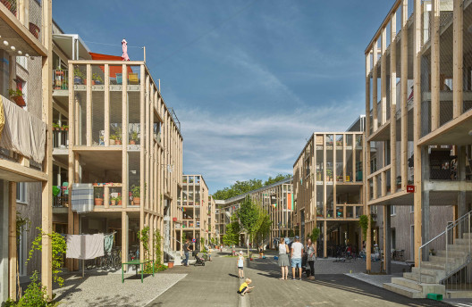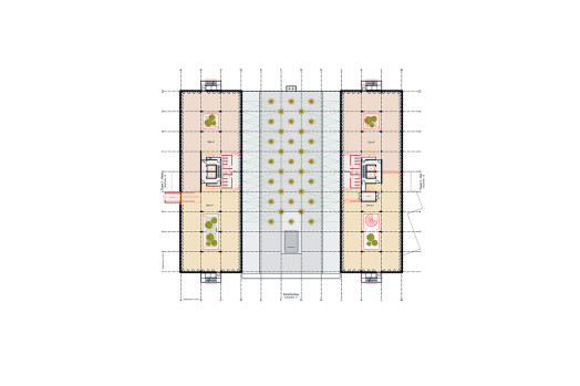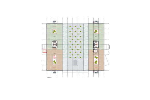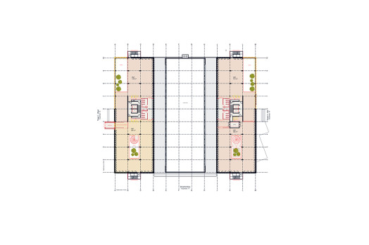 Les plafonds des onze étages supérieurs des bâtiments à ossature avec une trame de poteaux de 6 × 6 mètres doivent être percés sur deux ou trois niveaux afin d’offrir un meilleur éclairage. Un réaménagement des deux entrées existantes en foyers spacieux favorisera la création d’un site attractif. Par ailleurs, un espace vert vertical accessible entre les deux tours permettra d’améliorer la qualité de vie des usagers. Enfin, il est prévu de revaloriser les espaces extérieurs et l’accès au bâtiment. Alors que ces espaces étaient autrefois conçus pour les voitures (les trottoirs extérieurs sont totalement absents), ils deviendront désormais plus agréables et plus sûrs pour les piétons. La commune a d’ores et déjà pris de premières mesures visant à améliorer la qualité de vie dans la zone industrielle en aménageant des trottoirs et en plantant des arbres supplémentaires le long des voies publiques.