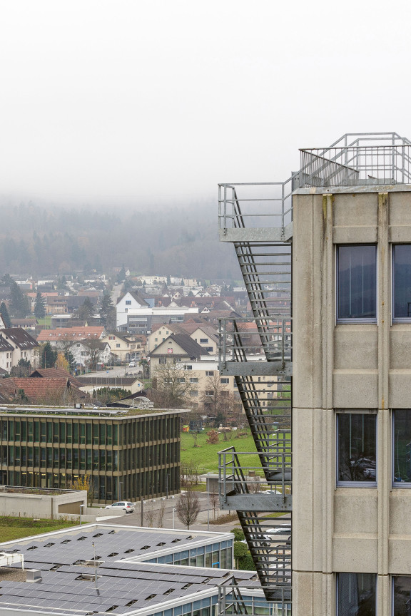 La société Suhner Suisse SA produit ici depuis des décennies, dans son siège principal de l’Industriestrasse, des pièces de machines de haute précision pour l’industrie automobile et aéronautique, entre autres. Depuis quelques années, elle loue également les deux rez-de-chaussée des tours 1 et 2, ainsi que la grande halle de production située entre les deux. Grâce à sa haute spécialisation et à la précision de ses produits, cette entreprise familiale de quatrième génération est active dans le monde entier. Sur son effectif total d’environ 750 personnes, 230 travaillent sur le site de Lupfig.